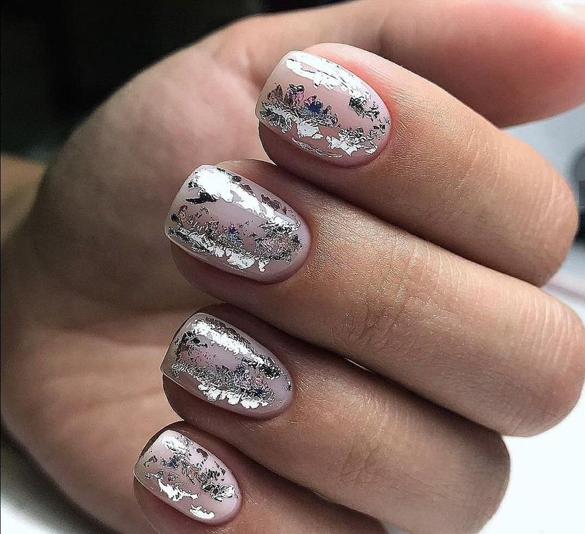 Попробуйте сделать нейл-арт с фольгой на короткие ногти – результат превзойдет все ожидания. Во избежание перегрузки дизайна не используйте другие варианты декора. Ограничьтесь фольгой и ноготки приобретут ухоженный вид.