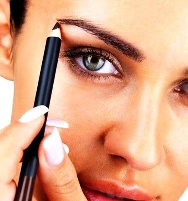- Цвет бровей аккуратно корректируется тёмно-серым, тёмно-коричневым карандашом.