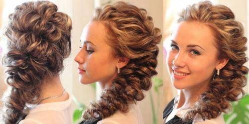 Такая прическа является еще одной вариацией вечерней укладки. Хорошо будет смотреться на вьющихся локонах.