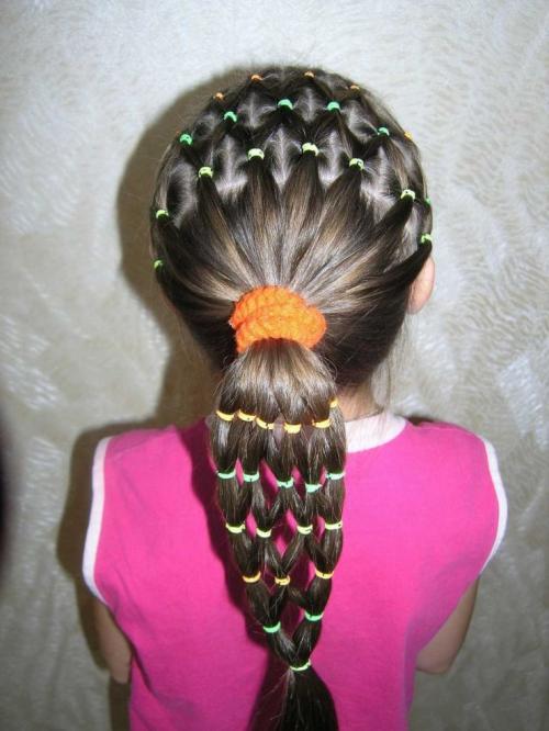 Среди причесок с резинками на длинные волосы есть одна, которая заслуживает особого внимания – коса, сделанная в ажурной технике.