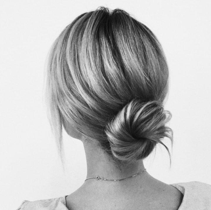 Консервативный или низкий пучок формируется очень быстро, поэтому на него не нужно будет тратить много времени по утрам. Он подойдет для коротких, средних и длинных волос.