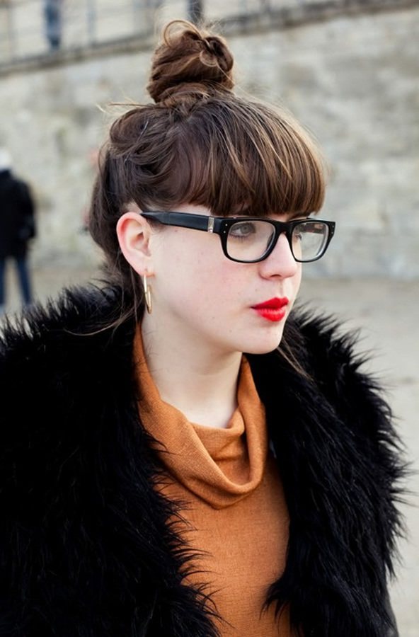 Ступенчатая стрижка часто осложняет процесс создания классических причесок. Пряди состриженные в несколько ярусов предательски торчат, демонстрируя свои кончики и придают укладке очень неопрятный вид. Если вы работает в офисе или другой сфере, где образ должен быть строгим и безупречным, то сложности возникнут с созданием пучка. А могет и не возникнуть, если вы научитесь делать такой вот милый и неординарный пучок, состоящий из основы (то есть самого пучка) и украшающих прядей, которые не помещаются в общий пучок. Получается очень хитро и невероятно красиво. В вашей власти видоизменить или дополнить эту прическу и носить ее в качестве вечернего варианта или повседневного.