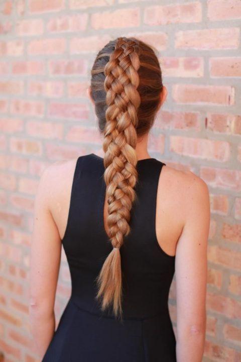 Канатная коса. Основа для этой красивой и необычной прически – все тот же хвост. Его нужно сделать высоко, пряди поделить надвое, закрутить жгутиками. Затем они переплетаются друг с другом и фиксируются – получается эффектный канат.