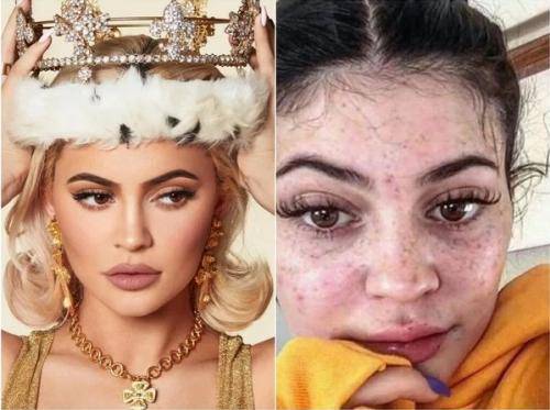 Кайли признанная бьюти – королева, только вот под слоями тонального и контуринга скрываются большие проблемы с кожей. Регулярные прыщи и воспаления постоянно мучают звезду, а из–за постоянного «боевого» макияжа вылечить кожу становится гораздо сложнее. Зато фотошоп отлично выручает!