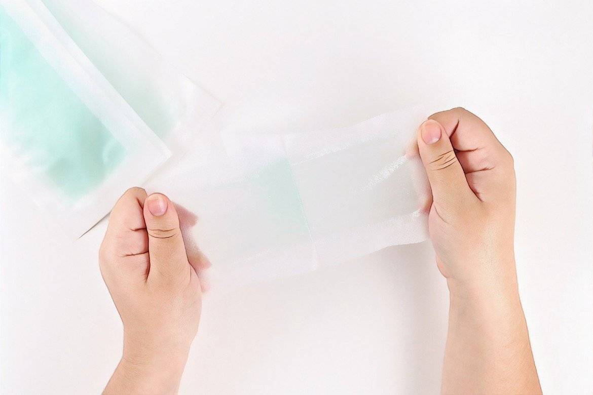 - тёплый или холодный воск при помощи специальных полосок наносится на нужный участок, приглаживается рукой;