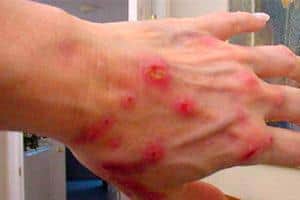 Для всех форм атомического дерматита клиническая картина остается неизменной: зуд на коже и пупырышки возникают на внутренних поверхностях верхних и нижних конечностях и на лице, разрешаясь, везикулы образуют области мокнутия, а после заживления – шелушащиеся уплотненные участки.