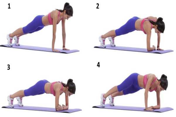 - вытянутые руки поставить перед плечами (чтобы усложнить задачу, можно держаться на локтях);