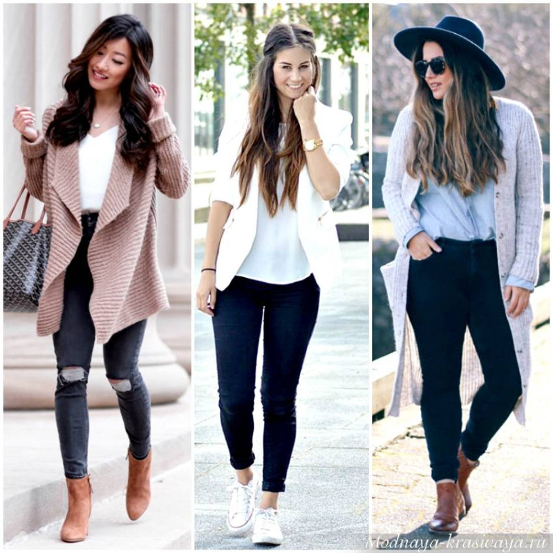 - Носить объемные кардиганы, рубашки и свитера, которые заканчиваются на «проблемном» месте – бедрах, там, где проходит самая широкая горизонтальная линия фигуры. Любые топы и пиджаки должны заканчиваться или выше или ниже этой линии.