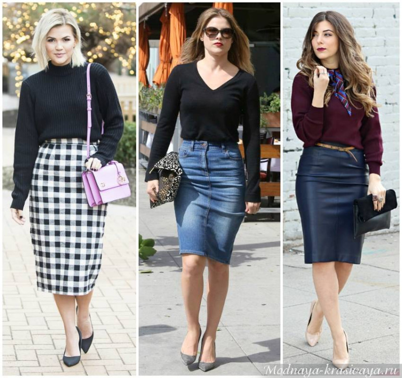 Превосходно выглядит юбка фасона тюльпан – она подчеркнет красоту и стройность ног, придаст нужной формы ягодицам.