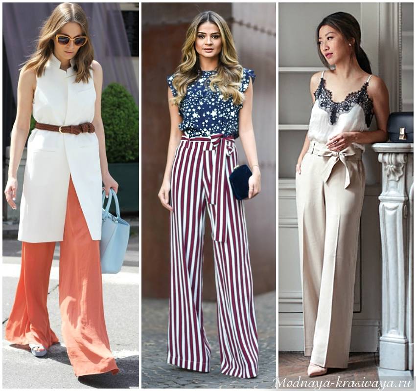 Это коварная одежда для представительниц женственного типа. Брюки лучше выбирать со средней посадкой. Слишком низкая и классическая высокая – сделают бедра еще крупнее. Исключение составляют брюки-палаццо с завышенной талией. Эта модель предпочтительнее для стройных девушек. Но в любом случае брюки не должны быть слишком узкими в нижней части ног.