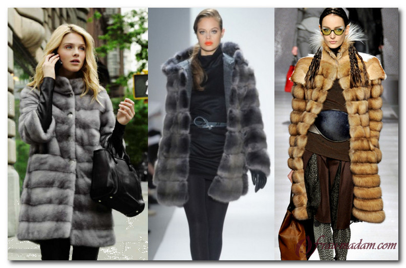 Стройным барышням с этим типом фигуры вполне подойдут шубки с горизонтальными полосами, а вот дамам с формами, лучше оказаться от них отказаться, чтобы не утяжелять силуэт.