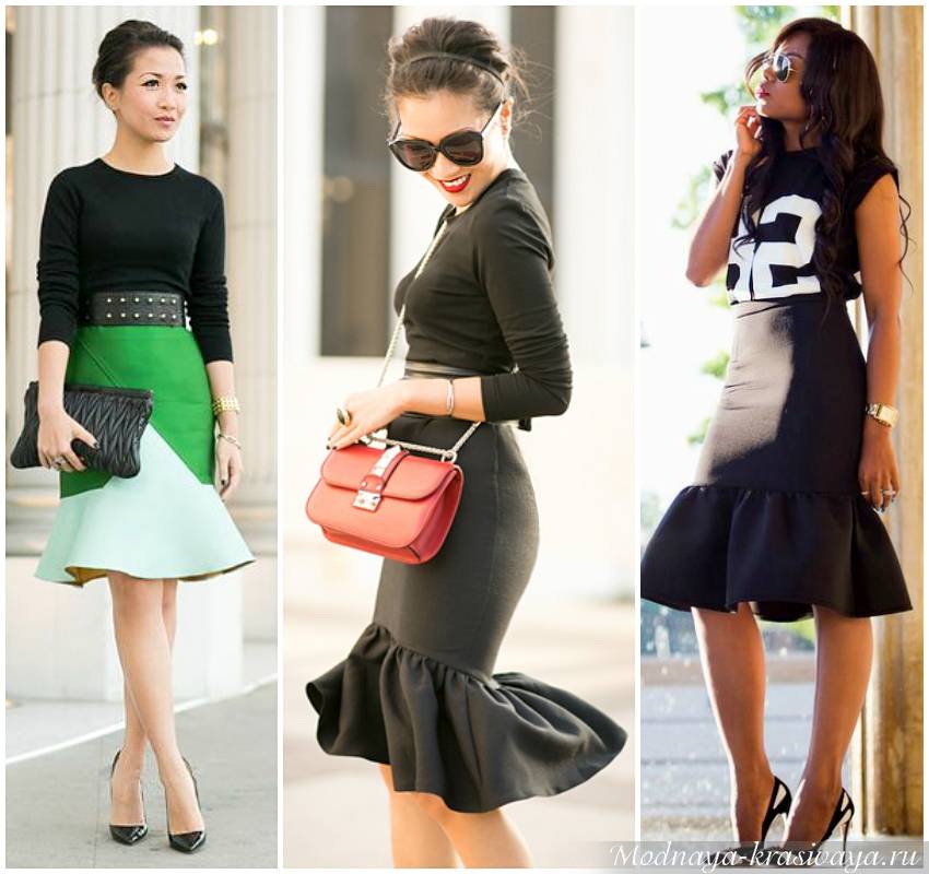 Превосходно выглядит юбка фасона тюльпан – она подчеркнет красоту и стройность ног, придаст нужной формы ягодицам.