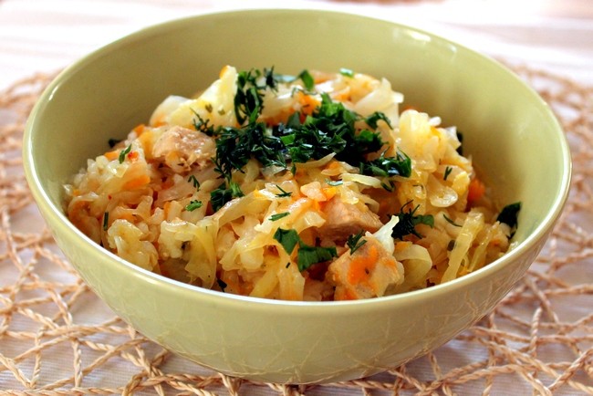 - Ужин: салат из свежих овощей, кальмары вареные, капуста без масла тушеная, чай.