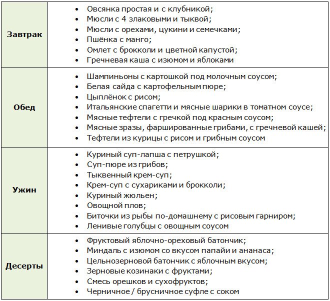 Меню диеты Малышевой