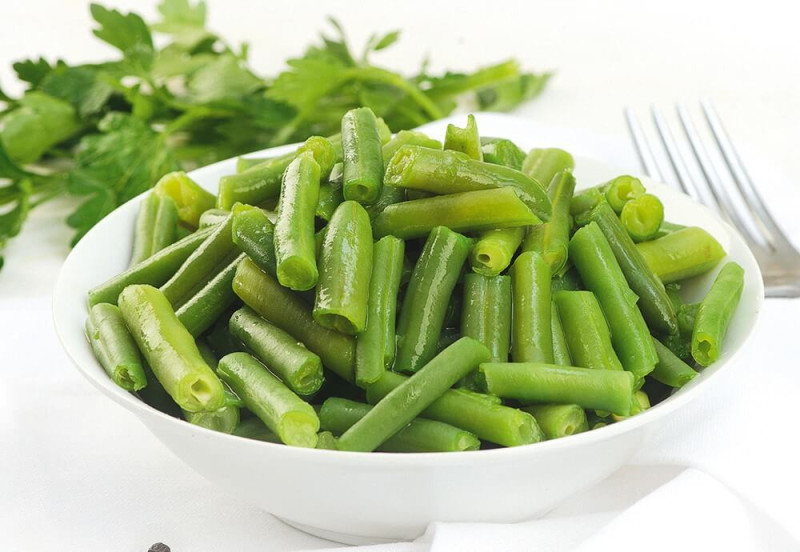 - Фасоль нарезается небольшими кусочками и бросается в заранее вскипяченную воду.