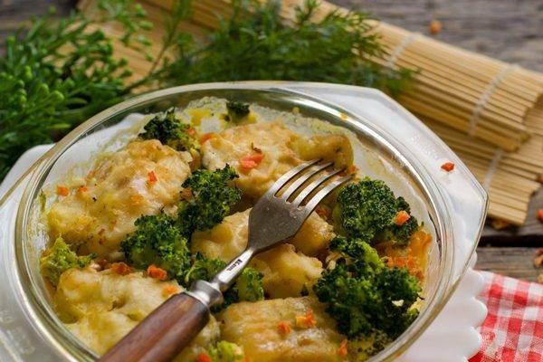 - Крем-суп из брокколи 250 гр. Отварная треска 150 гр;