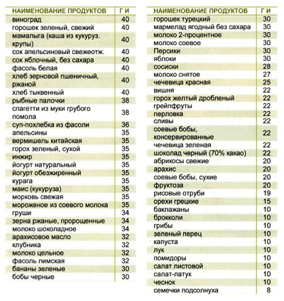 - в рационе не должно быть большого количества продуктов с высоким ГИ;