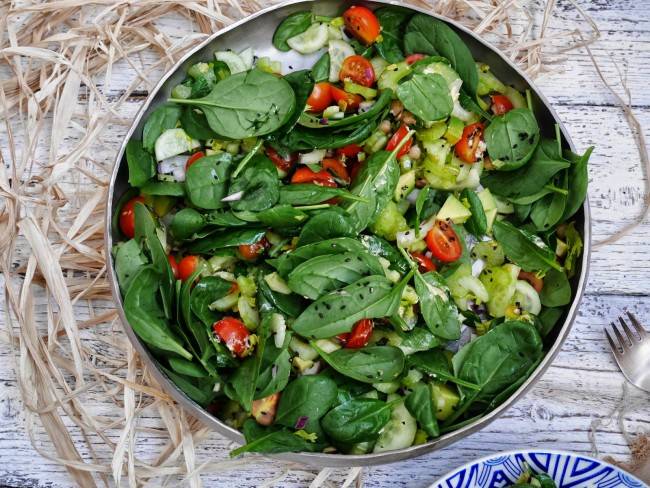 - салат из сырой моркови со шпинатом, заправленный лимонным соком;