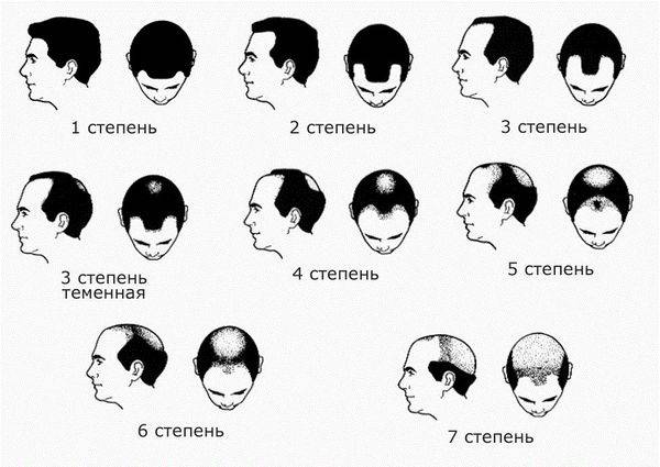 Выраженность потери волос у мужчин оценивается по шкале Норвуда: