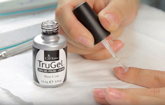 Действуйте осторожно во время нанесения базового слоя, чтобы гель не попал на пальцы. Подождите, пока базовый слой полностью высохнет, что займет в два раза больше рекомендованного времени.
