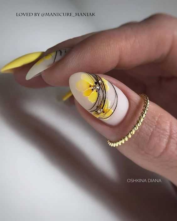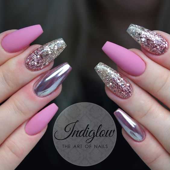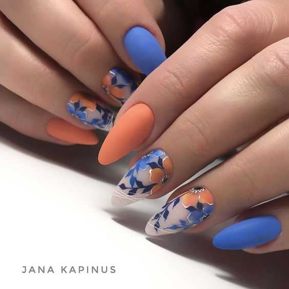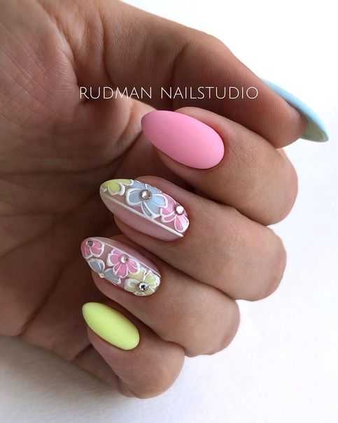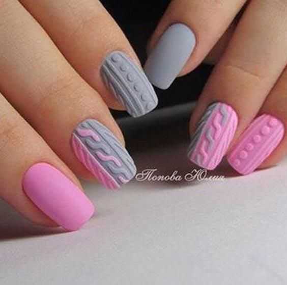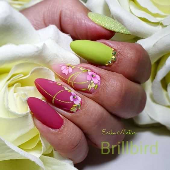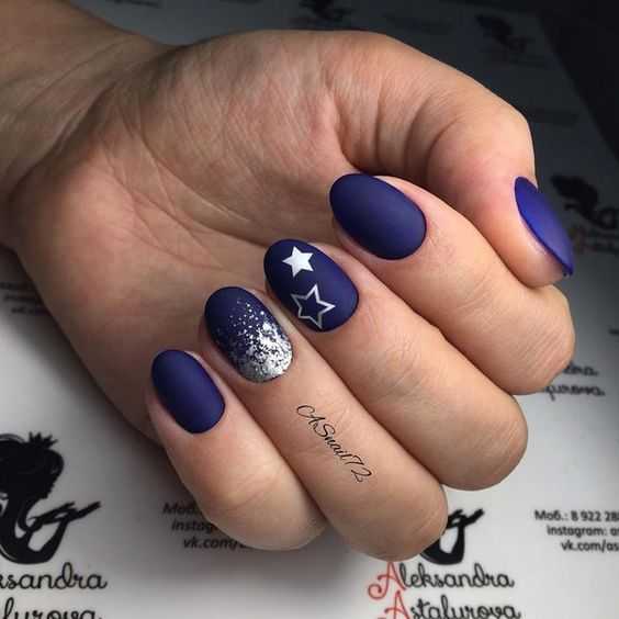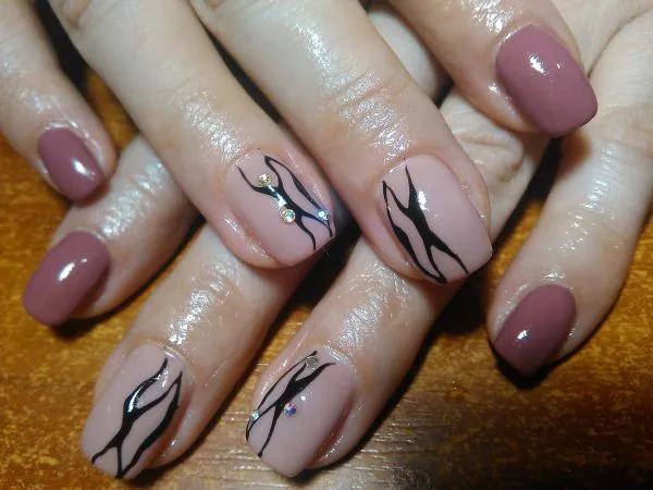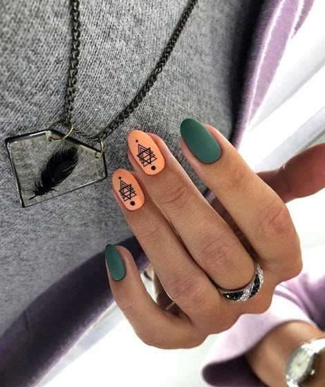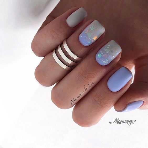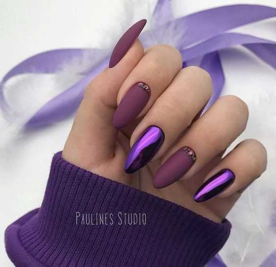 - сочетание матовых и глянцевых фактур на разных пальчиках;