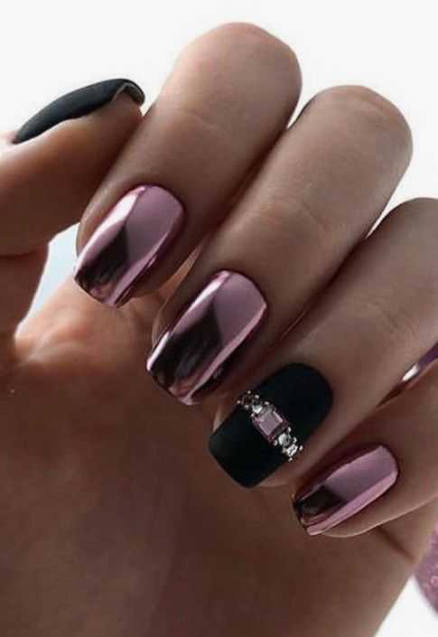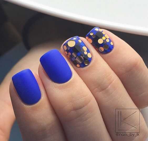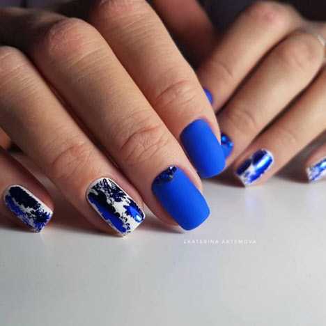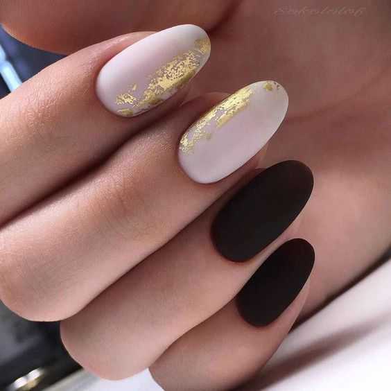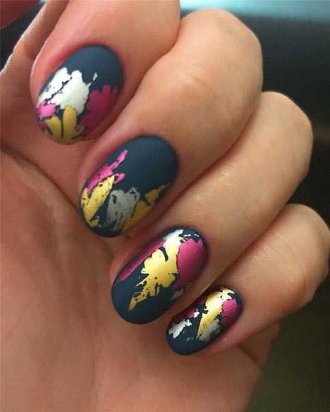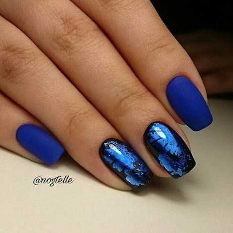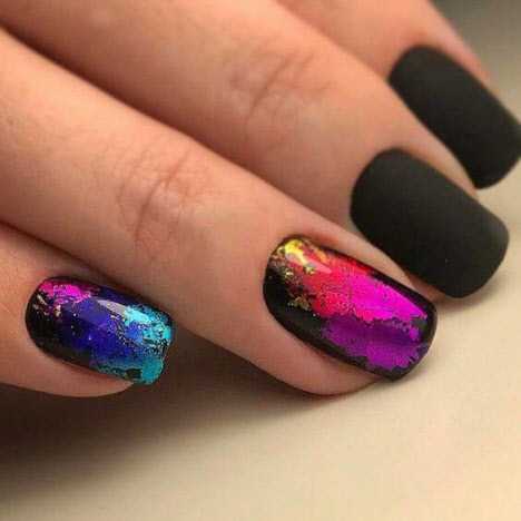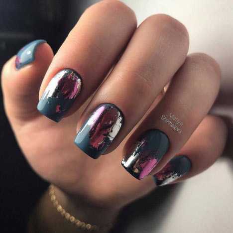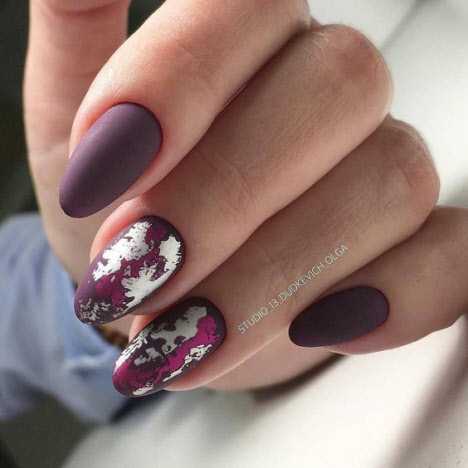 Хотите супер стильный маникюр? Тогда выбирайте матовый маникюр с фольгой. Существует несколько видов листов, благодаря которым можно воплотить самые разные дизайнерские идеи маникюра. Вы можете украсить фольгой несколько ноготков, подчеркнув дизайн, который очень красиво смотрится в темных и светлых тонах.