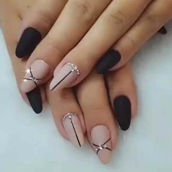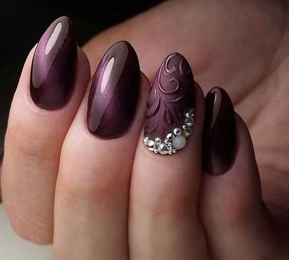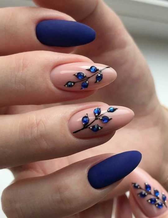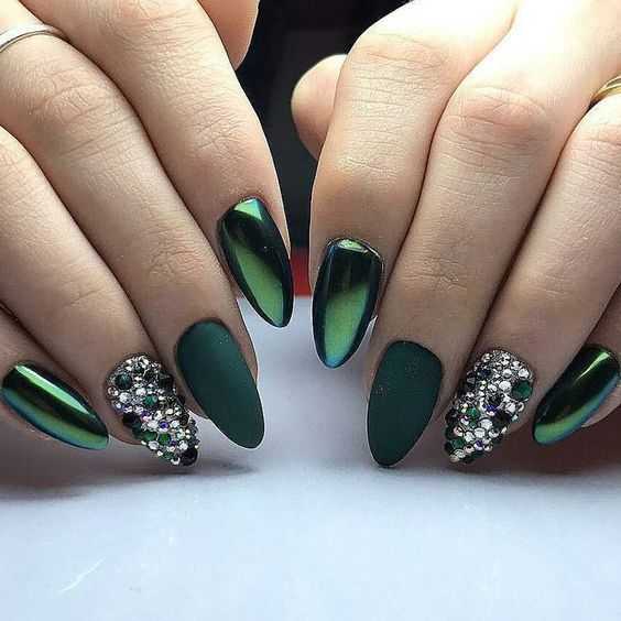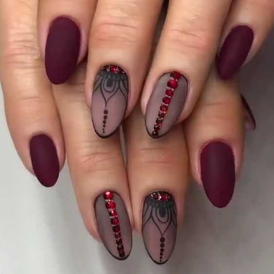 Маникюр с камнями просто шикарно смотрится в матовом исполнении, такой дизайн не оставит равнодушным никого. В осеннем маникюре сезона 2020 камни и стразы наносятся на ногтевую пластину в виде красивого узора на один-два пальца, или в виде мелких камушек на всю ногтевую пластину, тоже в виде акцента. Идеи для вдохновения, смотрите на фото ниже: