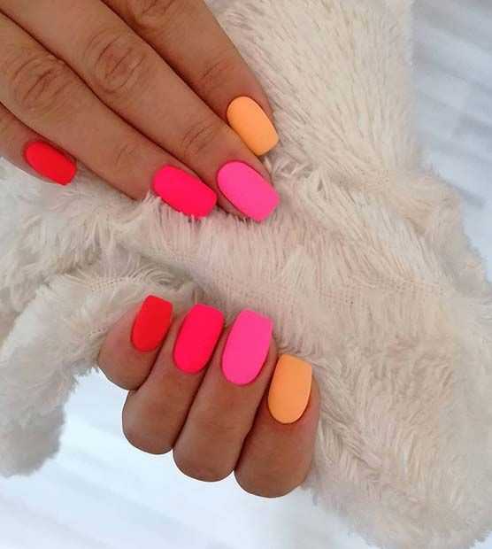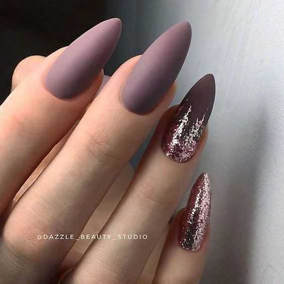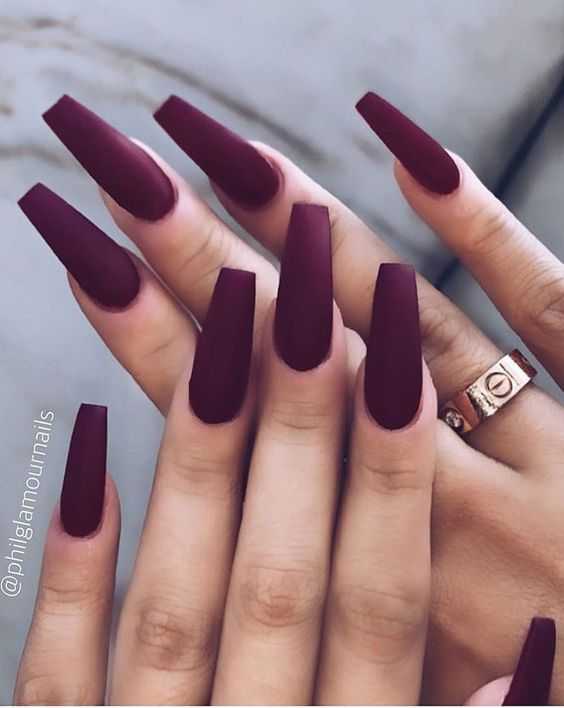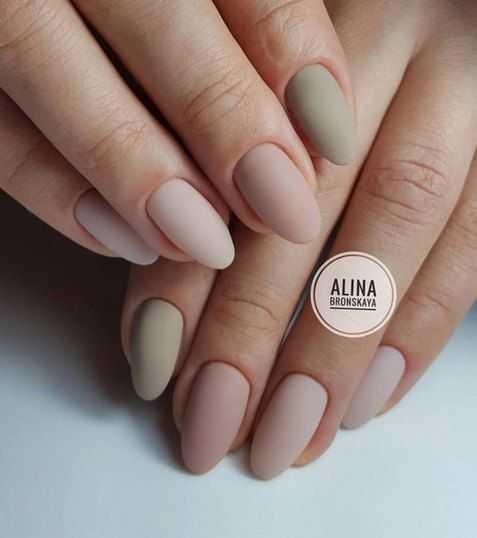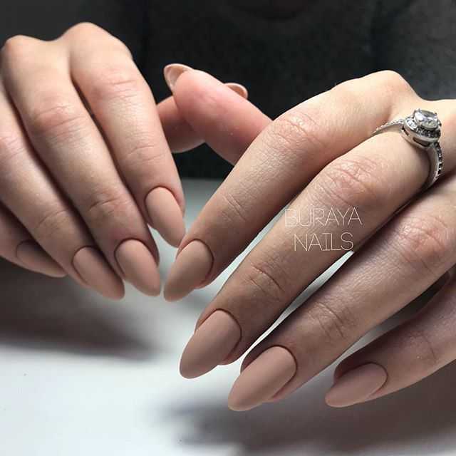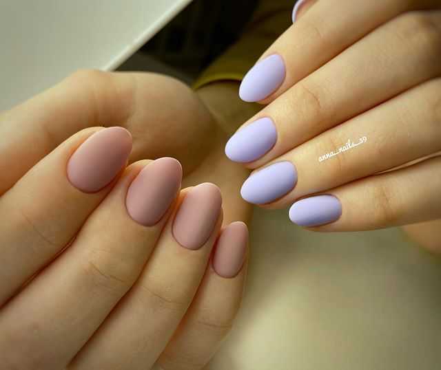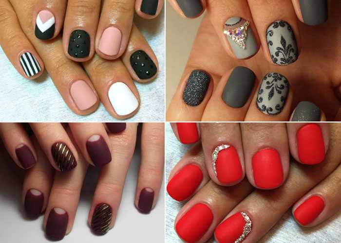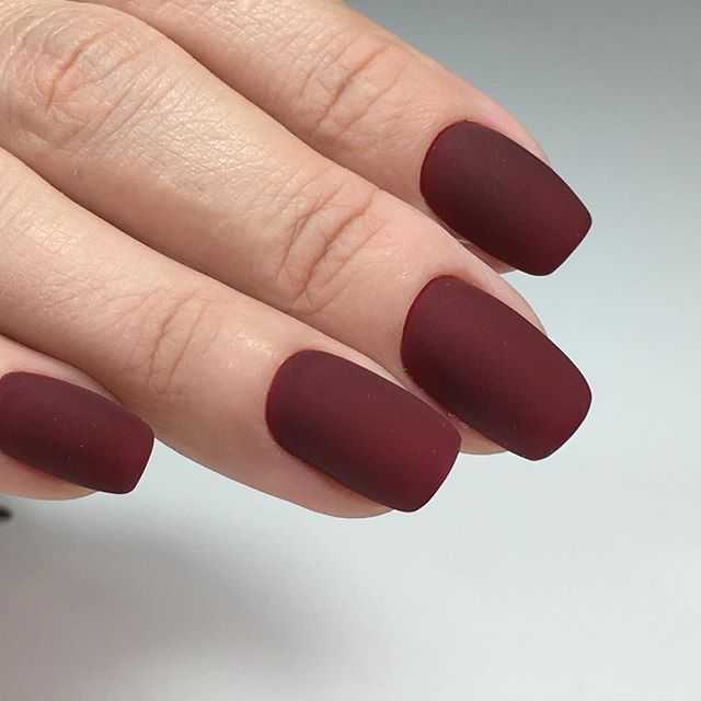 Матовый маникюр можно выполнить в любой цветовой гамме. От более темных до более светлых оттенков. И длинные, и короткие ногти.