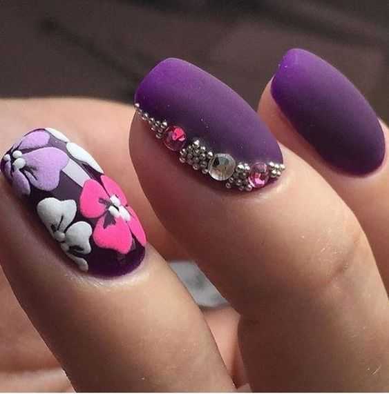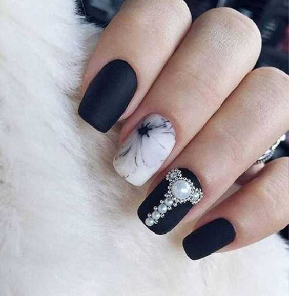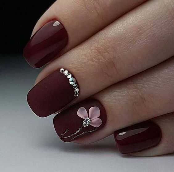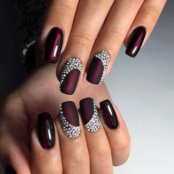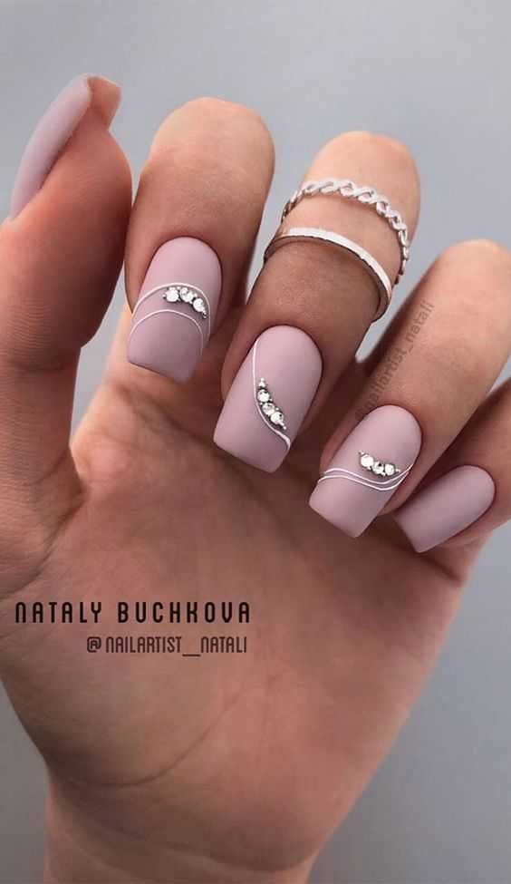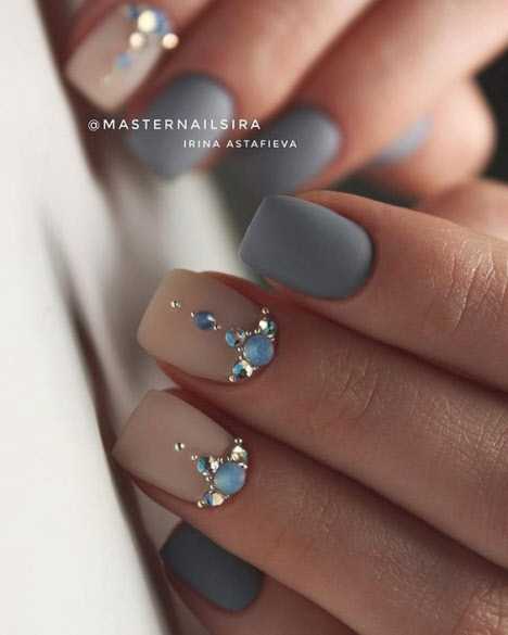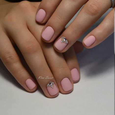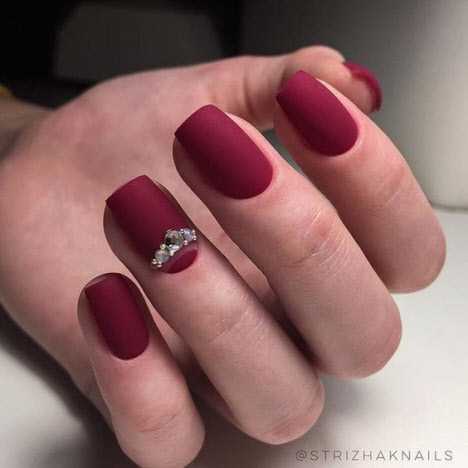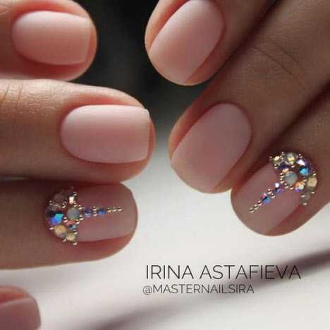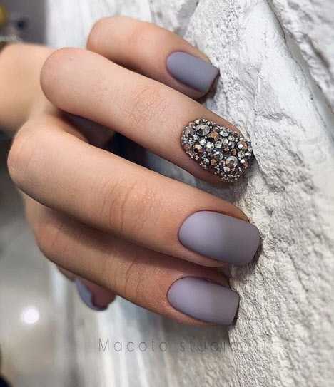 Матовый маникюр с камнями подчеркнет ваш стиль и женственность, придав образу особого шика. Для праздничного маникюра больше уместны камни и стразы, но сегодня все больше девушек подходят к этому виду маникюра в повседневной жизни.