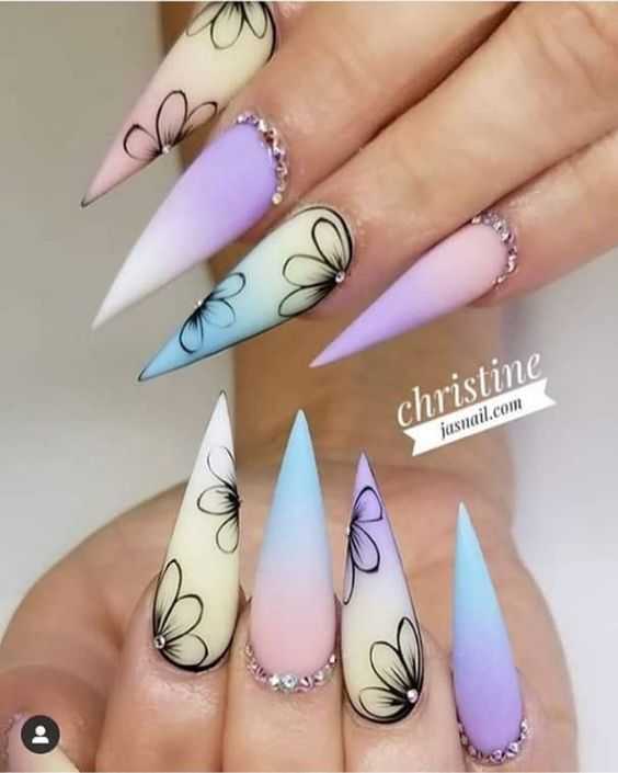 - сами по себе длинные острые ноготки — украшение. Обилие камней и другого декора может сделать образ вульгарным. Необходимо соблюдать меру;