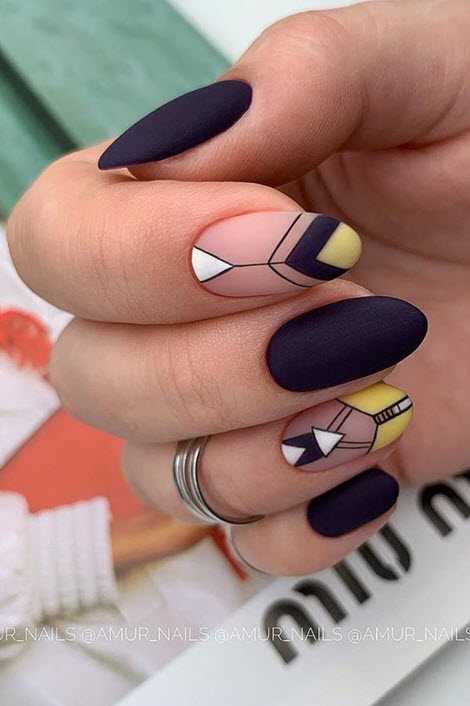 Линии, треугольники, ромбы и другие геометрические фигуры сделают ваш маникюр лаконичным, веселым и элегантным. Геометрические узоры могут украсить все пальцы или выступить акцентом на одном или двух.