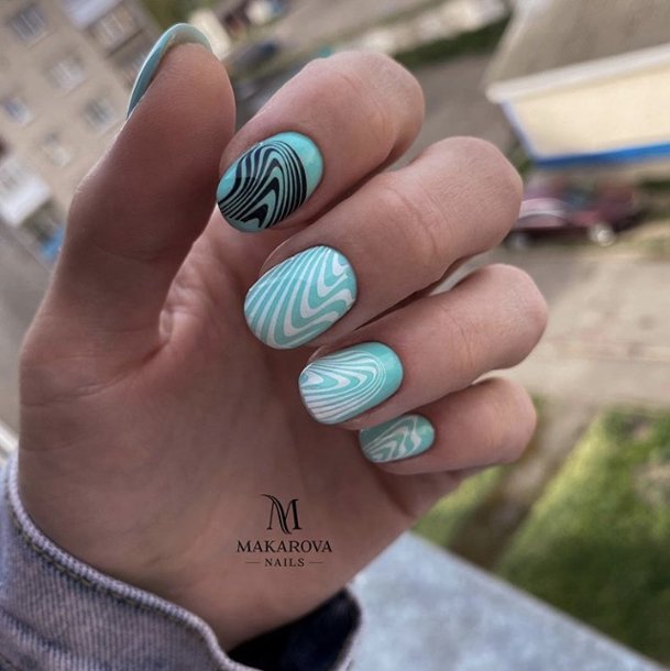 Черно-мятный маникюр на квадрат в стиле геометрия.