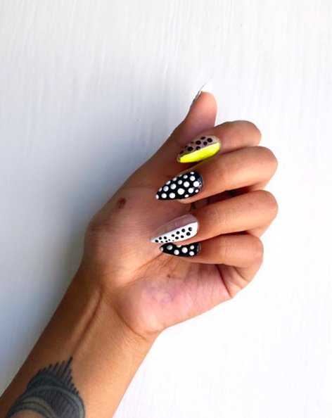 Если ты бунтарка в душе и не желаешь копировать готовые идеи – придумай собственные, смешивая различные фигуры и техники в выполнении геометрического маникюра. Сочетай геометрические формы с цветами, сердцами, тематическими рисунками. Дополняй дизайны стразами, пудрой. Экспериментируй с текстурами – глянцевой, матовой, напылением, присыпкой из блесток.