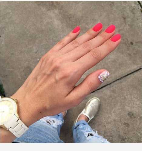 Портретный маникюр не должен быть слишком аляпистым, лучше, когда лицо изображено только на одном пальце руки, а остальные покрыты однотонным лаком или несколькими цветами, которые также присутствуют на портрете.