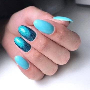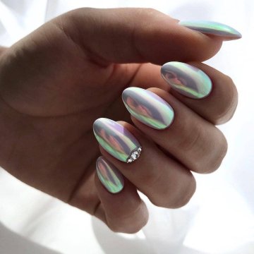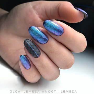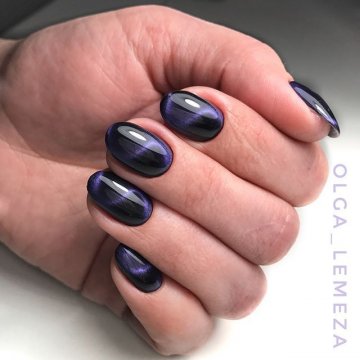 Стильным украшением овальных ногтей будут модные техники «кошачий глаз» и «битое стекло».