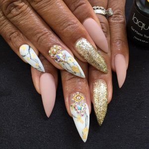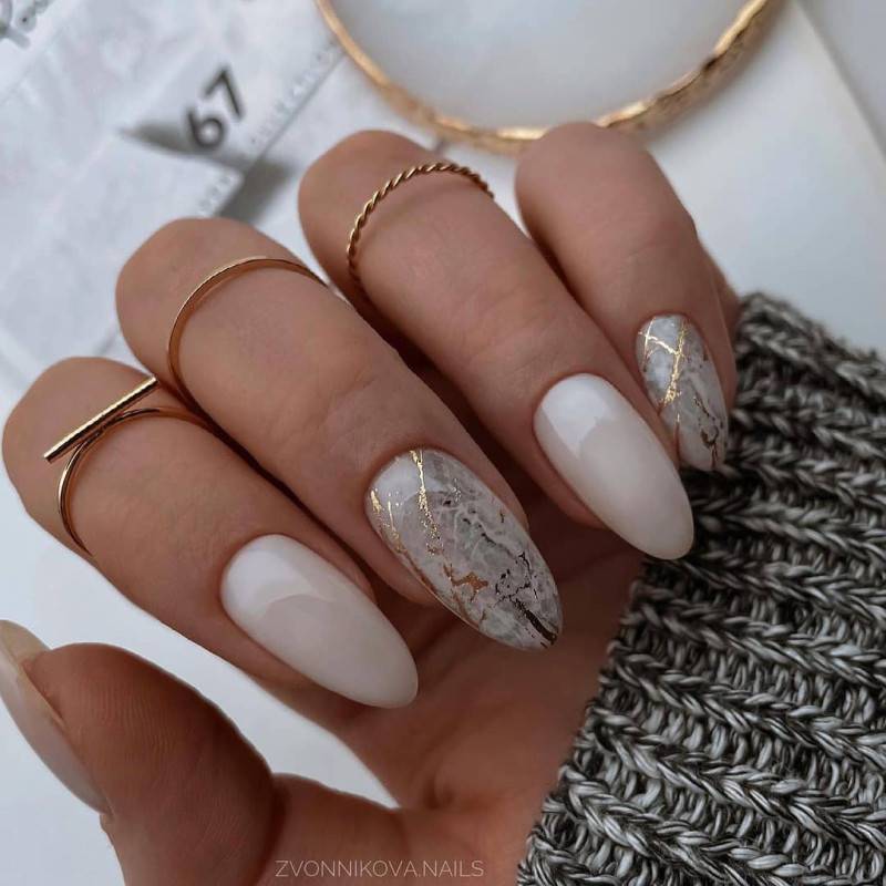 Мраморный эффект на короткую длину ногтевой пластины является настоящим пиком популярности в этом сезоне. Эффект переливающегося мраморного камня настолько понравился женщинам, что такой вариант делает хоть раз каждая из них