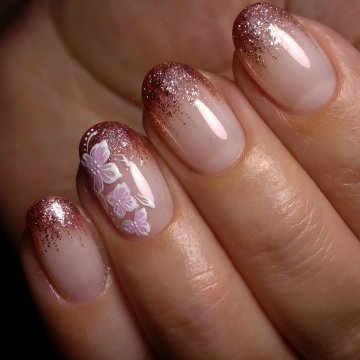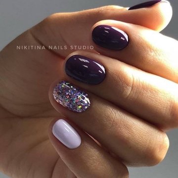 Кажется блестки уже никогда не выйдут из моды нейл арта. Несмотря на всю помпезность, этот вариант дизайна выбирает большое количество женщин. Чтобы снизить эффект новогодней елки, блестки сейчас используют в самом выгодном варианте. Можно покрыть несколько ногтей, а можно растянуть их от кутикулы к краю, создавая эффект градиента.