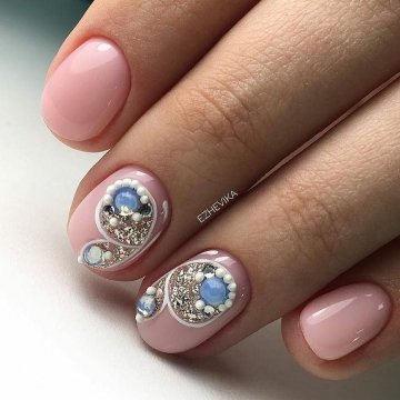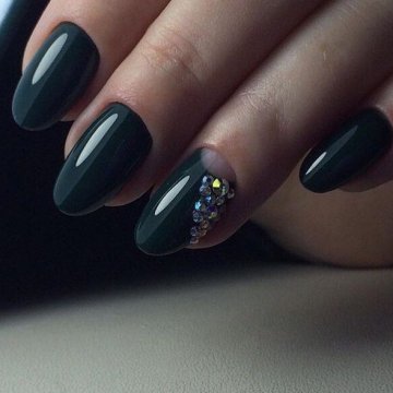 Использование страз и камней остается востребованным среди модниц. Такой маникюр обычно выбирают для торжественных случаев. Хотя используя минимальное количество камушков на акцентных ноготках, можно создать строгий дизайн, который будет уместен в офисе и другой официальной обстановке.