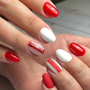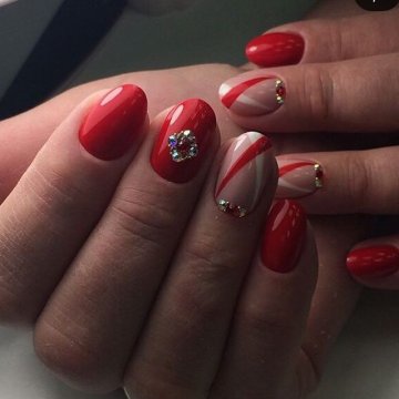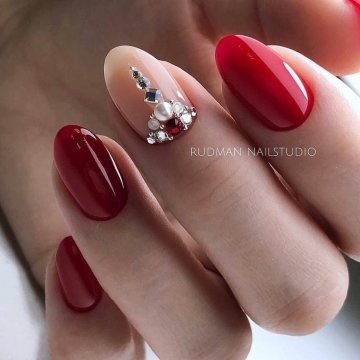 Море блесток, конечно же, станет идеальным вариантом для праздничного маникюра. Стразы могут быть совершенно разного размера и разного оттенка. Выложить их можно в интересную композицию, или же рассыпать в хаотичном порядке.