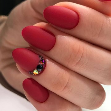 Осенний маникюр на овальных ногтях, матовый бордовый гель лак.