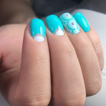 Френч, лунный маникюр, классическое однотонное покрытие, матовый маникюр, нейл-арт с оригинальными рисунками либо «голыми участками» — всё зависит от вашего настроения и предпочтений. Плюс не забываем о втирке, стразах, фольге, блёстках и прочих элементах декора, которые дополнят любую нейл-идею шиком и нотками торжественности.