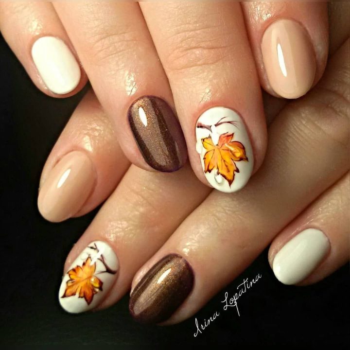 Осенний маникюр на овальные короткие ногти