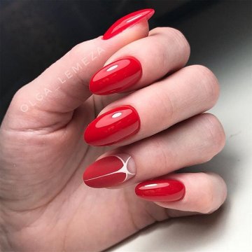 • Вишенка на торте – прототип создания маникюра, имитирующего ягодную композицию в сладком суфле. Это может быть не только изображение вишни в белом креме на фоне ярко-красного матового шеллака. Это также может быть ежевика, добавленная в белоснежное мороженное и окруженная остальными ноготками, выкрашенными в лиловый мат. В любом случае идея достаточно востребованна и привлекательна для тех, кто любит контрастную игру текстур на ноготках.• Эффектный лунный – ни один вариант обратного французского маникюра не будет так хорош, каким представительным и эстетически корректным является лунный маникюр именно на овальной форме ноготков. Данный эффект воспроизводится за счет мягкой параллели округлостей, читаемых в торцевом оформлении среза и очерченной линии лунулы. С оттенками и текстурами здесь можно экспериментировать – главное, подобрать сочетаемые друг с другом цвета.