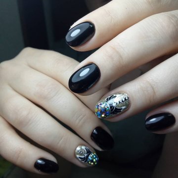 Стразы, рисунки и блестки на овальных, круглых ногтях: фото дизайна 2021-2022