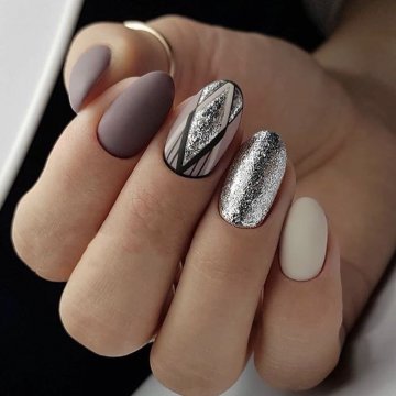 Особенно интересным нам кажется сочетание глянцевых и матовых фактур в одном маникюре.
