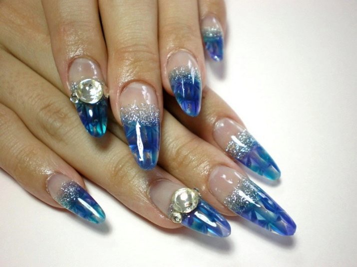 Ноготки с острым концом — идеальная база для разработки аквариумного маникюра. На такой форме будет выгодно смотреться любая интерпретация этого вида дизайна, если она выполнена технически правильно.