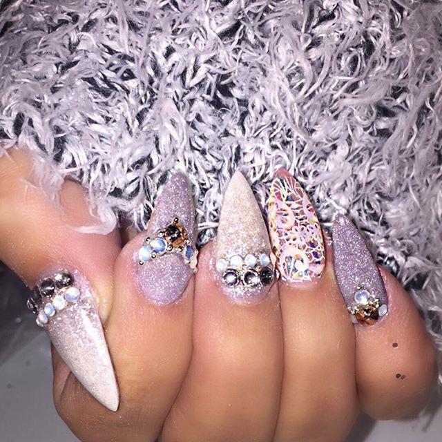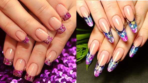 Данный маникюр подойдет девицам, которые выбирают среднюю длину ногтей. Включайте вашу фантазию и творите волшебство с помощью мерцающих блесток! Вы можете использовать крупные блестки (они наносятся на ноготь дотсом) или мелкие (используйте для его нанесения кисть), а также обсыпать разными блестками каждый ноготок.