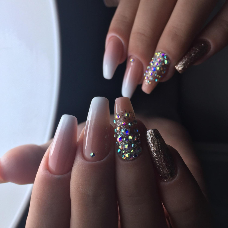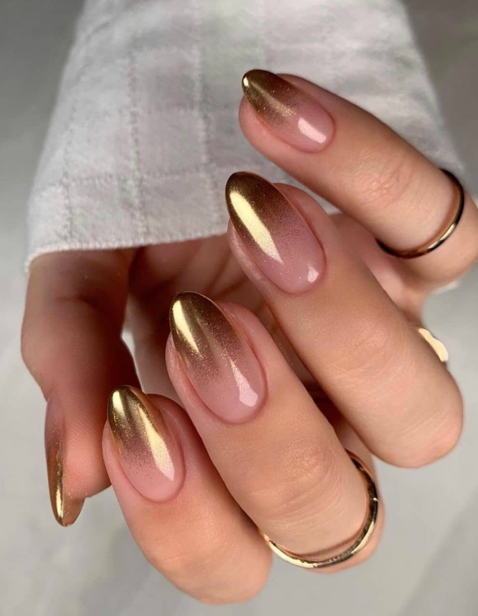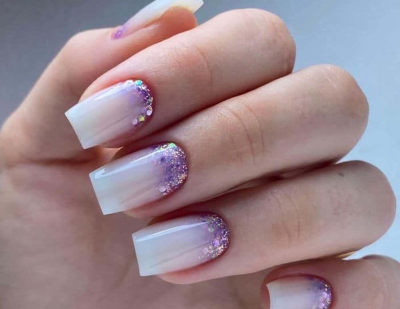 Идеален блестящий для любого праздника и не только. В моде использование градиентов, глиттера и шиммера для создания переливающегося покрытия. Многим нравятся серебристые, золотистые блёстки, даже мелкие синие, особенно со светоотражающими частицами.