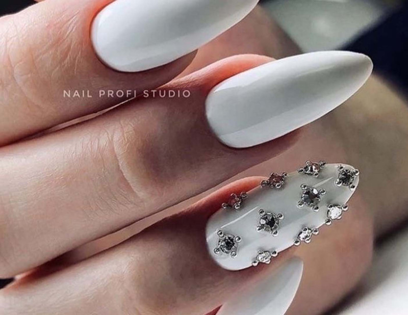 Надо сказать, что острые ногти – идеальный вариант для классических сочетаний. Стильные черный и белый превосходно его дополняют.