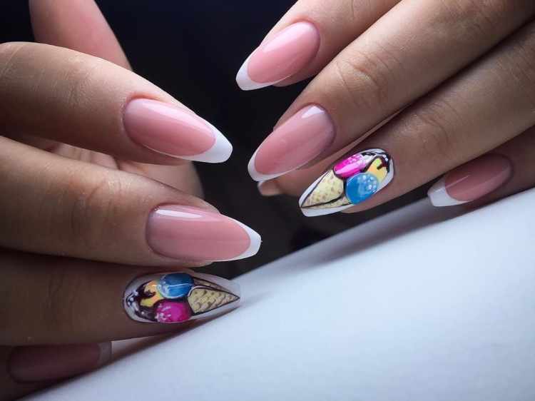 Френч маникюр с дизайном на разной форме ногтей в 2022 году
